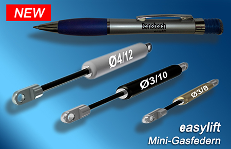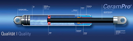 • Dank CeramPro® Kolbenstange, äußerst korrosions-beständig, geringe Reibungswerte und optimale Laufeigenschaften. Unsere kleinsten Gasfedern fertigen wir selbstverständlich exakt nach Ihren Wünschen. Hub, Einbaulänge, Kraft und Anschlussteile werden optimal auf Ihre Anwendung angepasst. Und selbstverständlich sind alle Baureihen auch als Dämpfer verfügbar!